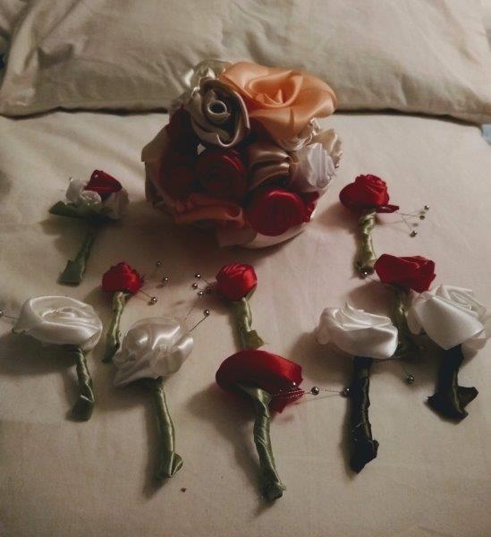 We hand make various pieces from wire. This includes upcycling old and broken jewellery, as well as combining wire work and fabric origami like fabric roses.